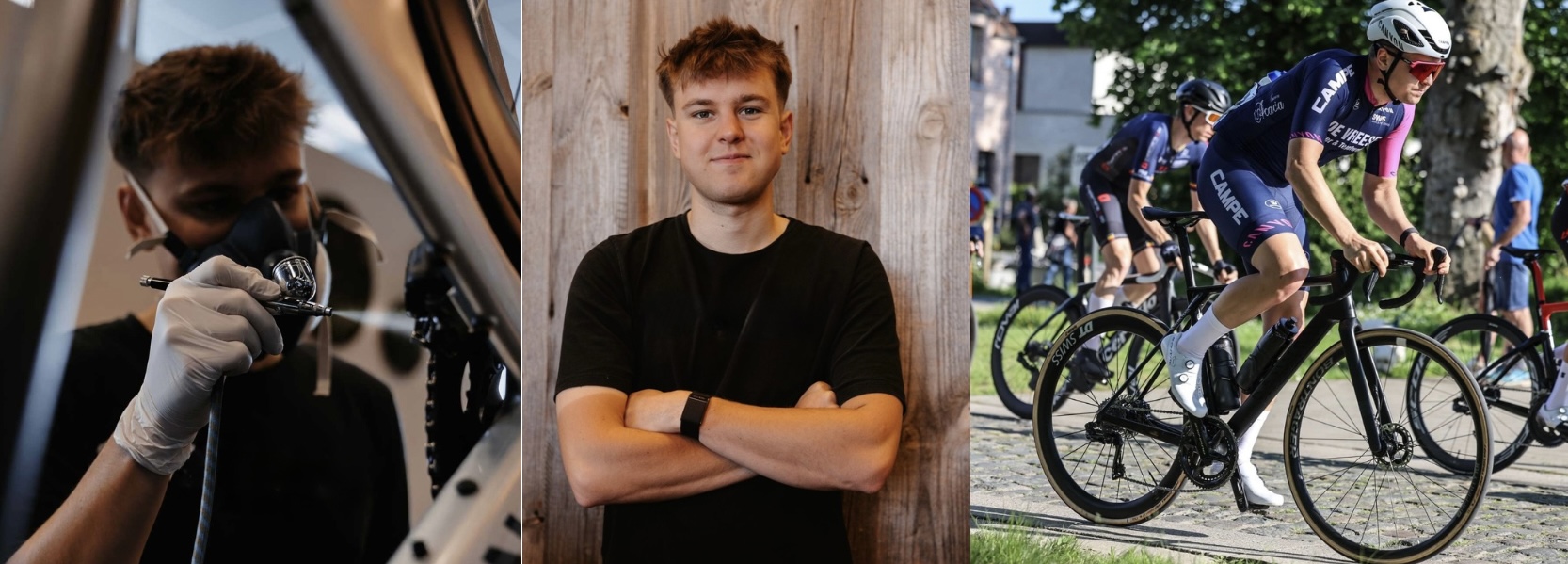 Na mijn periode in het veld stapte ik over naar het wegwielrennen, sindsdien ben ik altijd blijven sleutelen aan mijn eigen fietsen. De afgelopen vier jaar kon ik mijn kennis nog verder uitbreiden in een high-end fietsenwinkel, waar ik dagelijks werkte met topmateriaal en de nieuwste technologieën.
